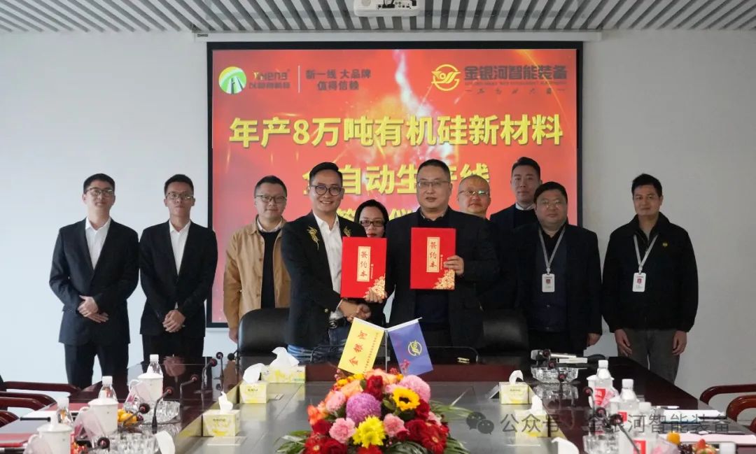 2024年01月27日,湖北以恒高新材料有限公司與佛山市金銀河智能裝備股份有限公司正式簽約年產(chǎn)8萬噸有機(jī)硅新材料全自動(dòng)生產(chǎn)線。
